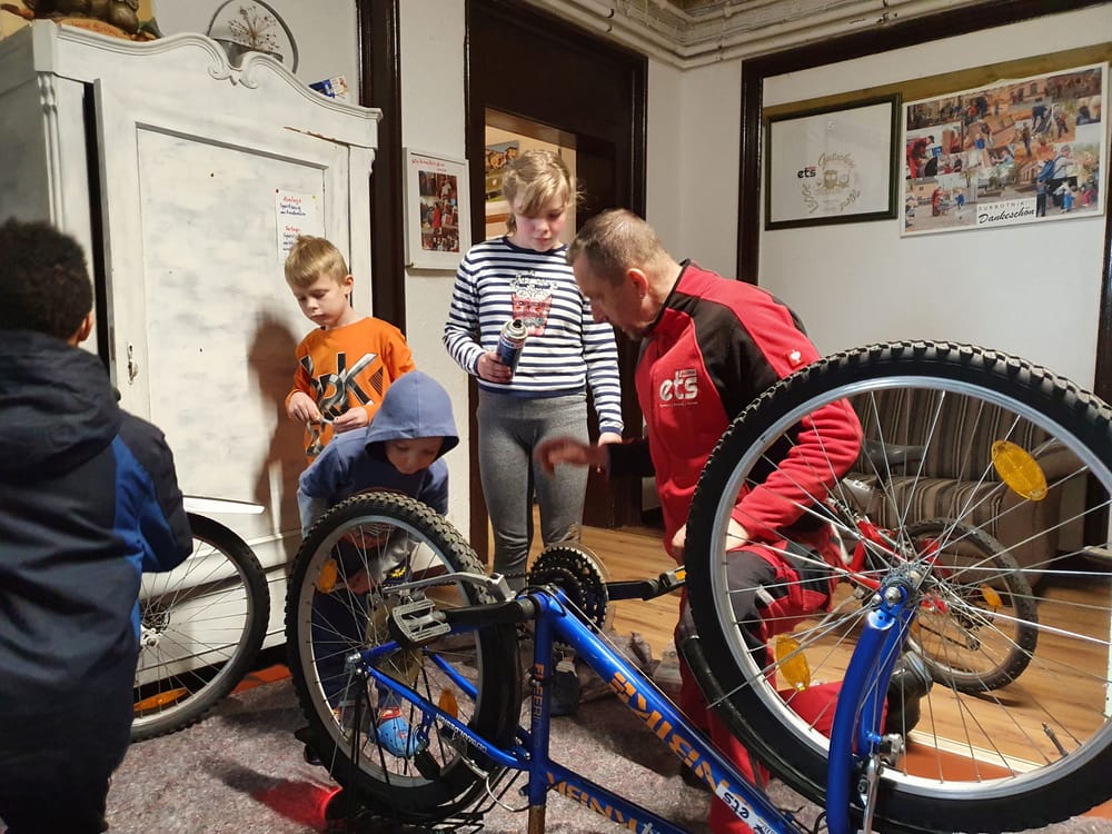 Reparaturstunde - Gemeinsam mit den Kindern haben wir eine AG Fahrrad gegründet. Regelmäßig werden die Fahrräder kontrolliert und repariert.
